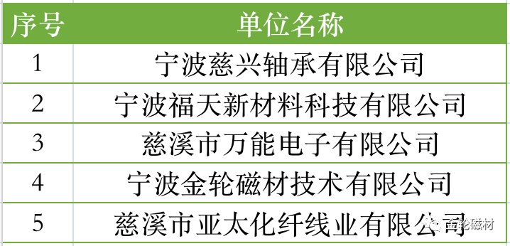 Le déanaí, d'fhógair Biúró Bardasach Geilleagair agus Teicneolaíocht Faisnéise Ningbo an liosta de na monarchana glasa cúig réalta agus ceithre réalta i Ningbo (an 1ú atch), agus roghnaíodh Ábhar Maighnéadach Jinlun go rathúil mar mhonarcha glas i Ningbo. Roghnaíodh 9 bhfiontar san iomlán i gCathair Cixi. Ina measc, roghnaíodh 4 fhiontar mar mhonarchana glasa 5 réalta agus roghnaíodh 5 fhiontar mar mhonarchana glasa 4 réalta.