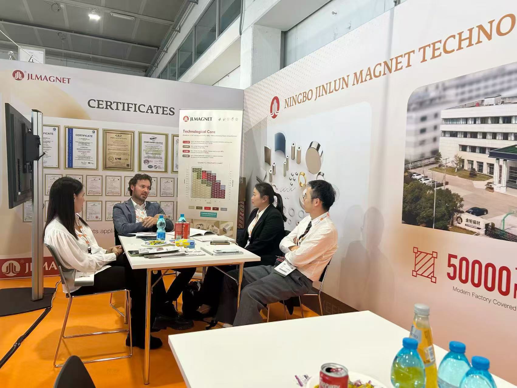 Ag an taispeántas seo, thrasnaigh toscairí gnó ó ar fud na cruinne sléibhte agus farraigí le chéile, ag gabháil do mhalartuithe frithpháirteacha chun forbairt trádála comhoibríoch a chruthú. Ghlac Ningbo Jinlun Magnetic Materials páirt i bplé duine-le-duine le ceannaitheoirí ón Iodáil, ón tSlóivéin agus ó náisiúin eile, ag tabhairt aghaidh ar fhiosrúcháin na gcliant maidir le slabhra soláthair tearc-chré, feidhmíocht grád, próisis táirgí, sceidil seachadta agus lastais onnmhairithe. Ina theannta sin, rinneadh malartuithe domhain le cliaint thar lear maidir le héilimh agus dúshláin reatha laistigh den mhargadh iarratais ábhair mhaighnéadacha ardfheidhmíochta idirnáisiúnta, rud a d'fhág go raibh réamhphlé agus dréachtú na réitigh ábhar maighnéadach ardfheidhmíochta is déanaí. Táthar ag súil, trí réitigh shaincheaptha d’fheidhmchláir ábhair mhaighnéadaigh a chur i bhfeidhm go hiomlán ina dhiaidh sin, go soláthróidh cumais nuálaíochta teicneolaíochta na cuideachta – arb iad is sainairíonna iad ‘ardfheidhmíocht, ísealchostas agus cleachtais ghlasa’ – eispéireas táirge feabhsaithe do chliaint. Ní hamháin gur ardaigh rannpháirtíocht an taispeántais seo tionchar branda Ningbo Jinlun Magnetic Materials laistigh den mhargadh idirnáisiúnta d'ábhair mhaighnéadacha ach freisin chuir sé le tuiscint na cuideachta ar threochtaí margaidh na hEorpa. Soláthraíonn sé seo léargais luachmhara maidir le leathnú an mhargaidh amach anseo, seirbhísí cliant thar lear, agus aistriú leanúnach na cuideachta i dtreo tairiscintí táirgí ardleibhéil.
