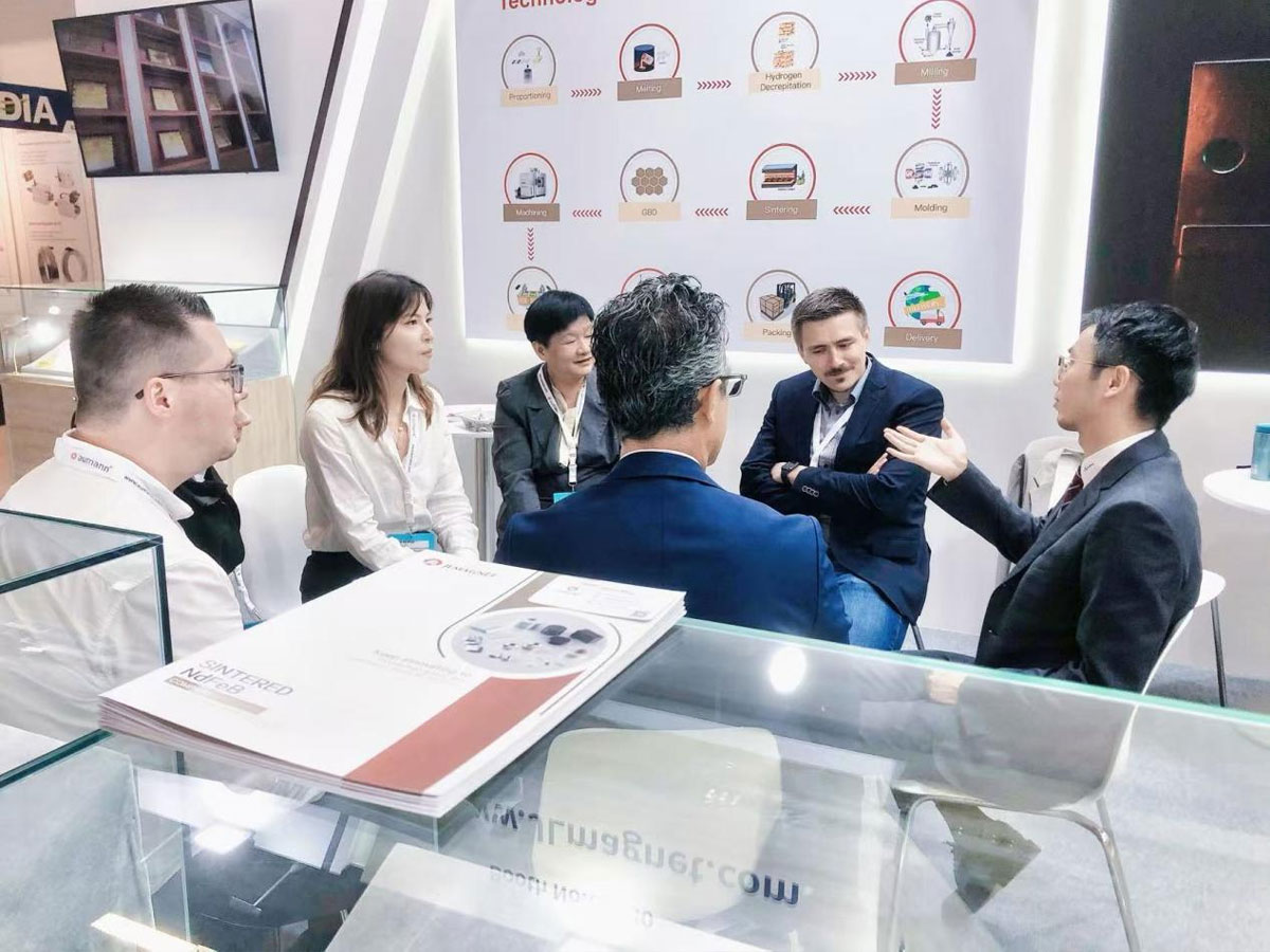 Bhuaigh foireann Ningbo Golden Wheel Materials Maighnéadacha an moladh d'aon toil ó chustaiméirí thar lear le réitigh theicniúla nuálacha, táirgeadh táirgí cobhsaí agus cáilíocht seirbhíse maith. Ar an turas seo go dtí an Taispeántas Coil Idirnáisiúnta Beirlín, d'úsáid Jinlun Magnetic Materials an eolaíocht agus an teicneolaíocht is deacra, an teicneolaíocht níos fearr agus an tseirbhís níos mó ó chroí chun tacú le tionscal ábhar maighnéadach na Síne.