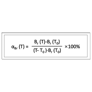 Ina measc, is iad Br(T) agus Br(T0) an t-iarsma ag an teocht T agus an teocht tagartha T0 faoi seach. De ghnáth roghnaítear teocht an tseomra nó 20 ° C mar T0, agus ní mór don soláthróir agus don éilitheoir araon luach teocht ard a chinneadh de réir na timpeallachta úsáide. Má tá αBr dearfach, ciallaíonn sé go n-ardóidh an remanence de réir mar a mhéadaíonn an teocht; má tá sé diúltach, ciallaíonn sé go laghdaíonn an remanence de réir mar a mhéadaíonn an teocht.