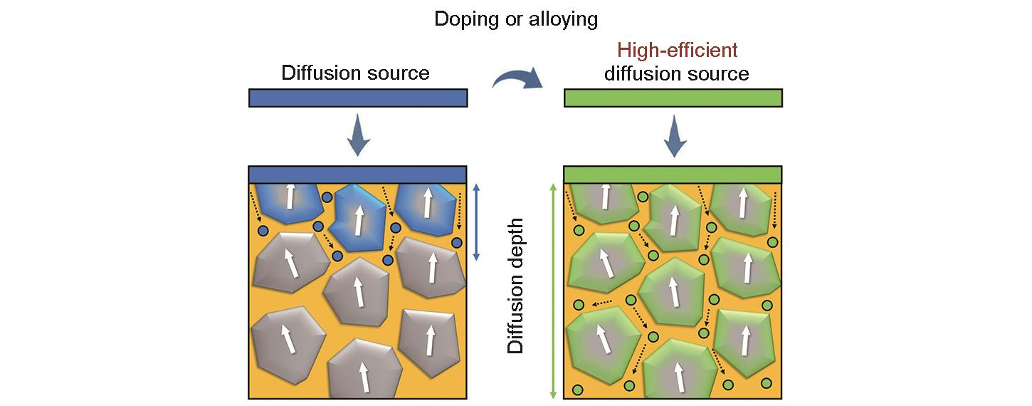 | Ionchorpraíonn gráin teorainn idirleata teicneolaíocht le domhain íseal trom annamh teicneolaíocht idirleathadh magnetron agus teicneolaíocht phriontáil scáileáin. Má chuirtear an teicníocht seo i bhfeidhm, a dháileann eilimintí tearc-chré trom le hábhar íseal feadh na dteorainneacha gráin, feabhsaíonn sé lochtanna teorann gráin agus baintear amach méadú suntasach ar Hcj. |